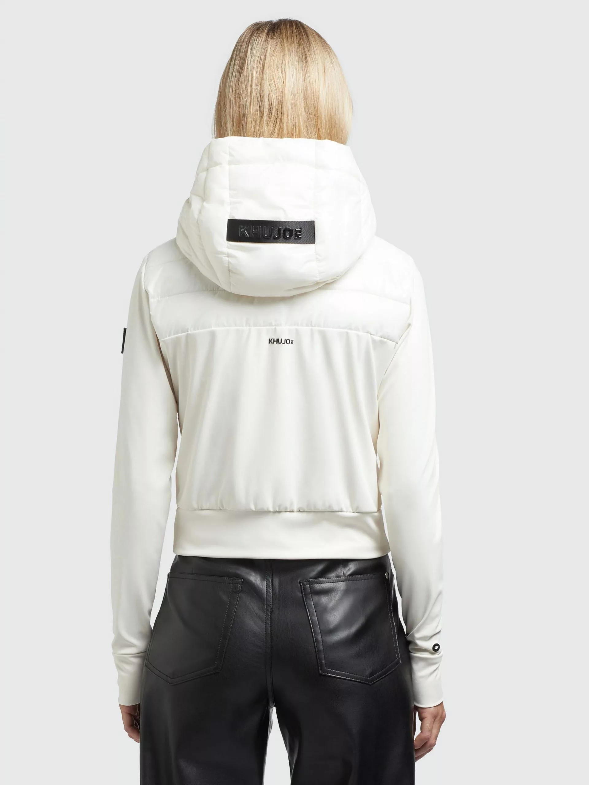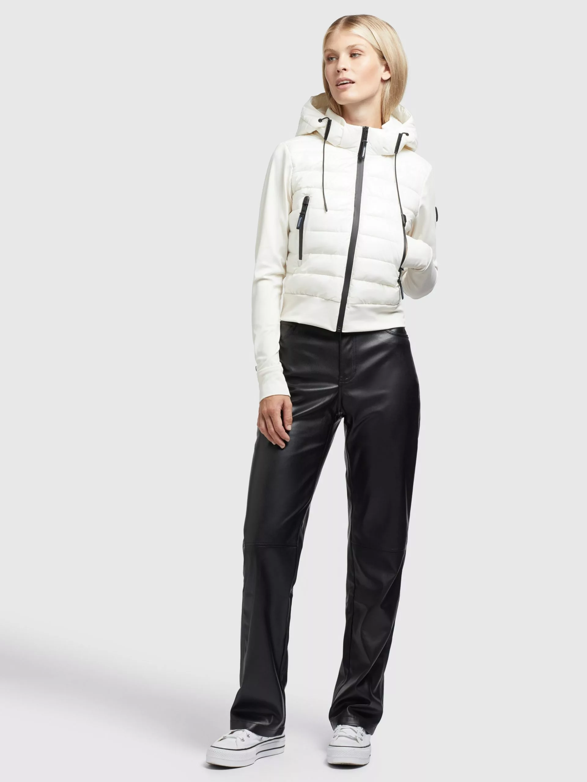 Die kurz geschnittene, leicht glänzende khujo Jacke DALIS SHINY mit abnehmbarer Kapuze, einem elastischen Kordelzug und einer leichten Wattierung in der gesteppten Vorderseite, Kapuze und der Passe im Rückenteil kommt im angesagten Cropped Style. Dank dem Reißverschluss und zwei seitlichen Reißverschlusstaschen mit einer wasserabweisenden Beschichtung, einer Windschutzblende und einem verstärkten Stehkragen bist Du mit dieser Steppjacke unterwegs gut ausgestattet.