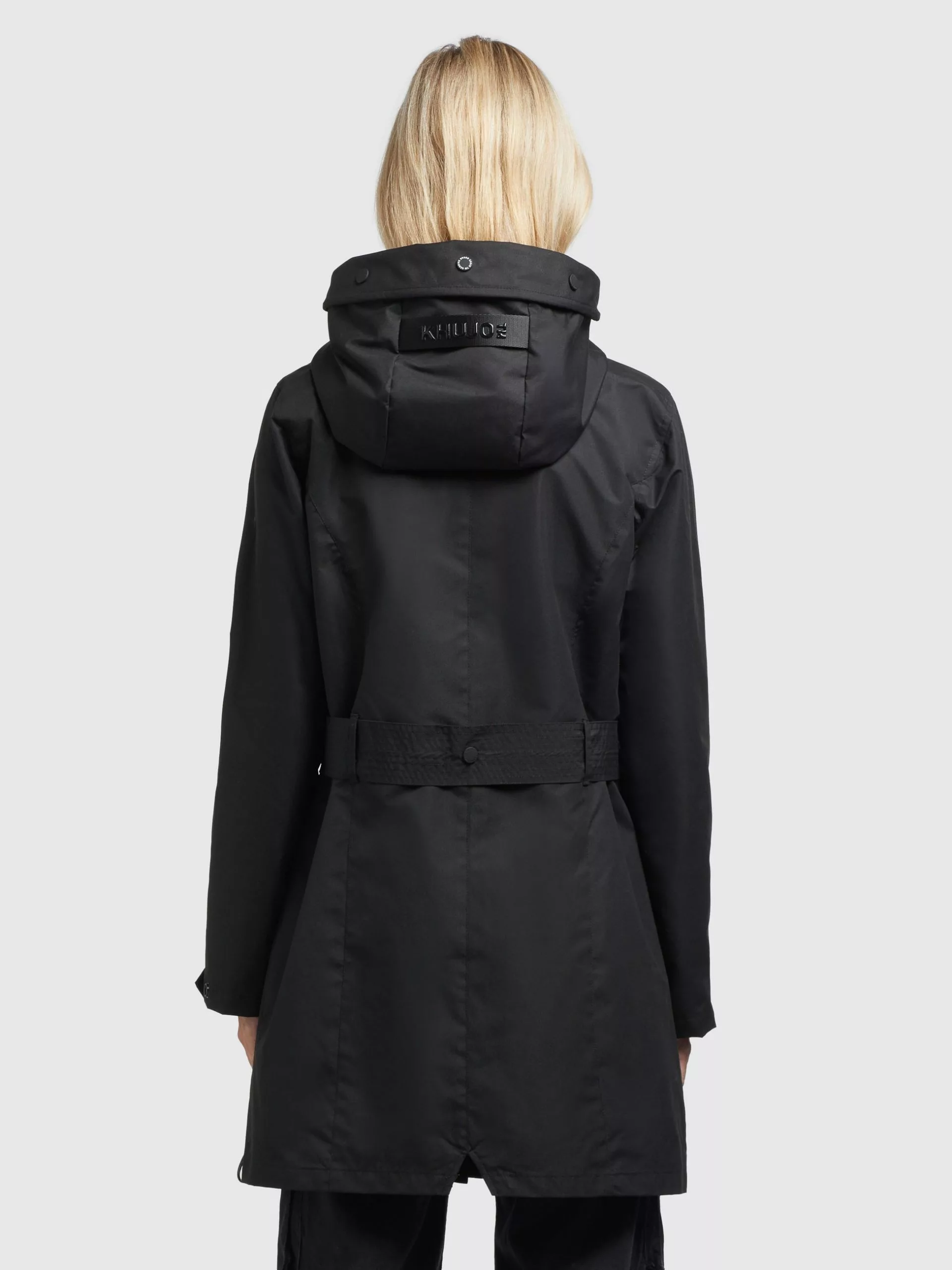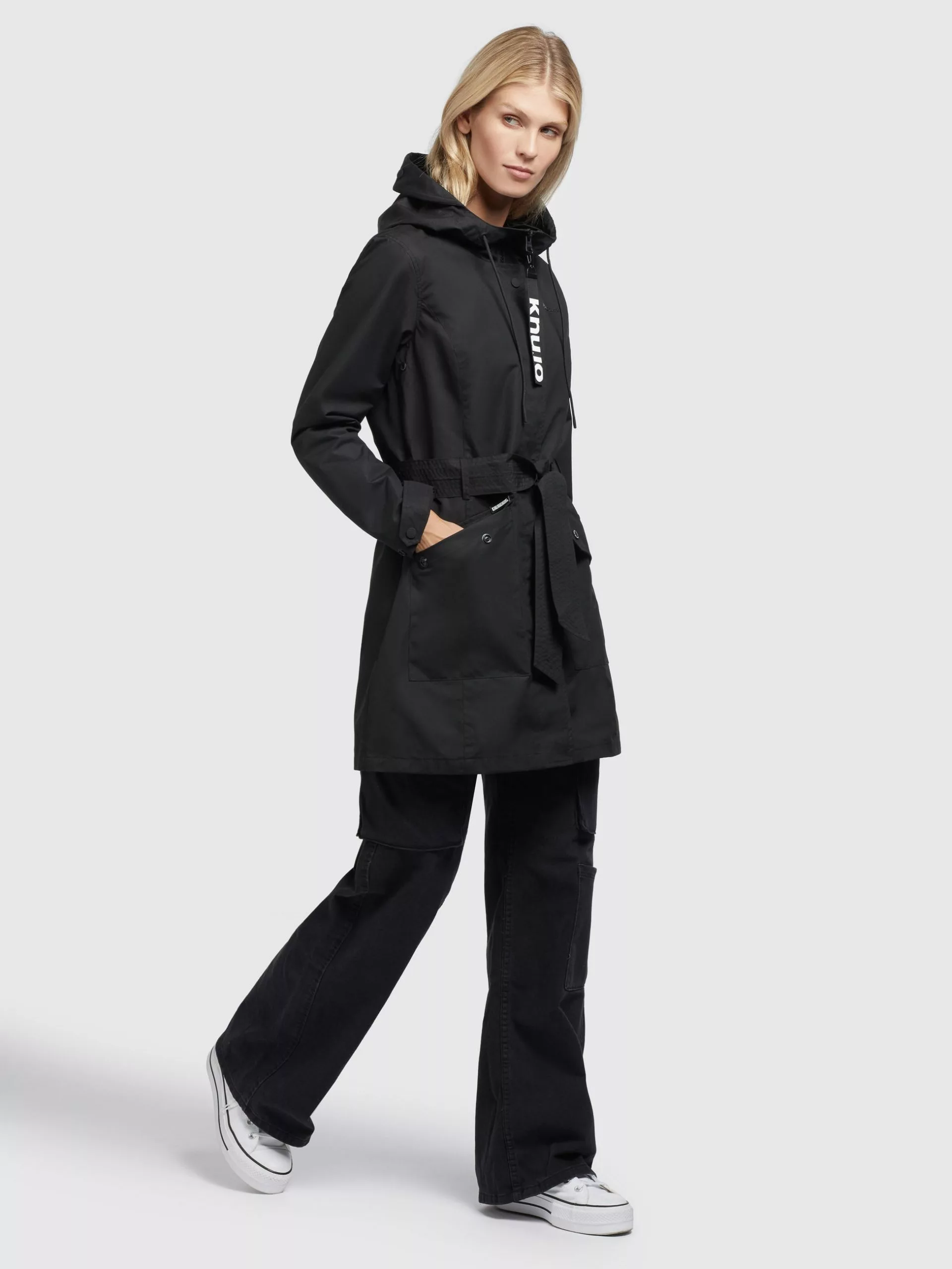 Mit Gürtelschlaufen und einem abnehmbaren Stoffgürtel ausgestattet bietet der einfarbige khujo Mantel LAUREN3 die perfekte Mischung aus Trenchcoat und Sommerparka. Die hoch schließende Kapuze mit Kordelzug, eine Kombination aus Reißverschluss und Druckknopfleiste, verstellbare Riegel an den Ärmelenden und große Pattentaschen komplettieren das Design bei dieser leichten Sommerjacke. Dank der Belüftungsösen unter den Armen ist zudem für angenehmen Tragekomfort gesorgt.