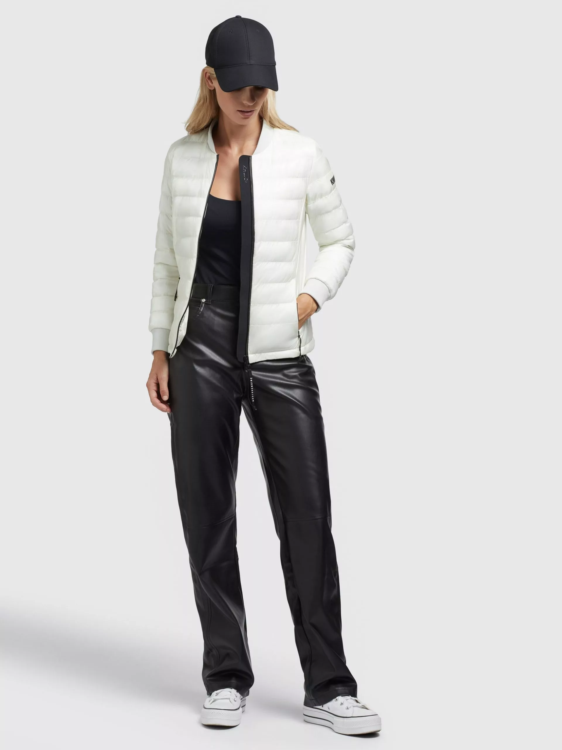 Die kurz geschnittene, leicht glänzende khujo Jacke MAUDE SHINY mit geripptem Kragen, einer leichten Wattierung und einem Reißverschluss mit wasserabweisender Beschichtung kommt im athleisure Look, der sich prima kombinieren lässt. Dank einer Windschutzblende und gerippten Bündchen, seitlichen Nahttaschen mit Reißverschluss und einer Innentasche bietet die Steppjacke im Regular Fit ausreichend Stauraum für unterwegs.