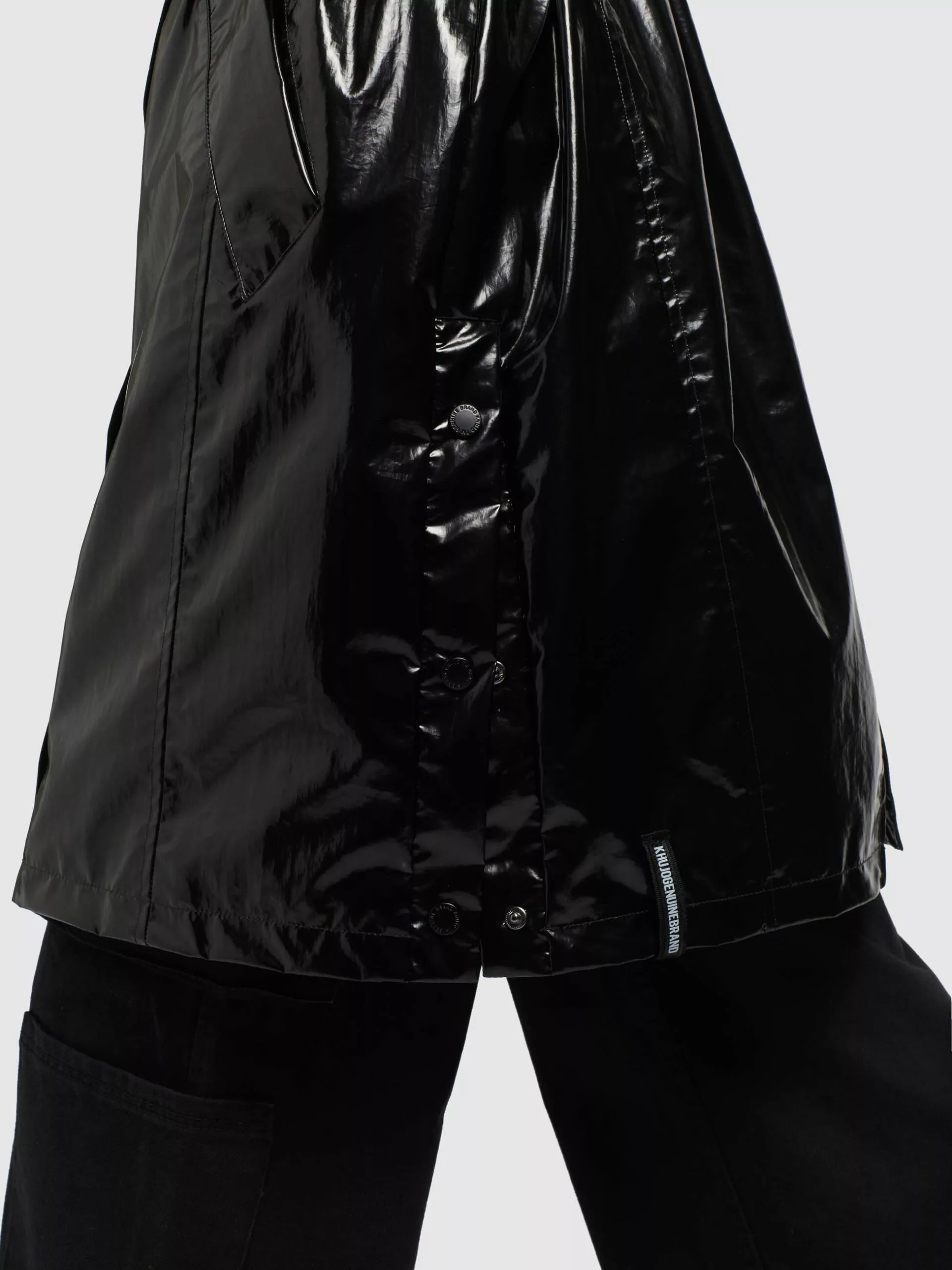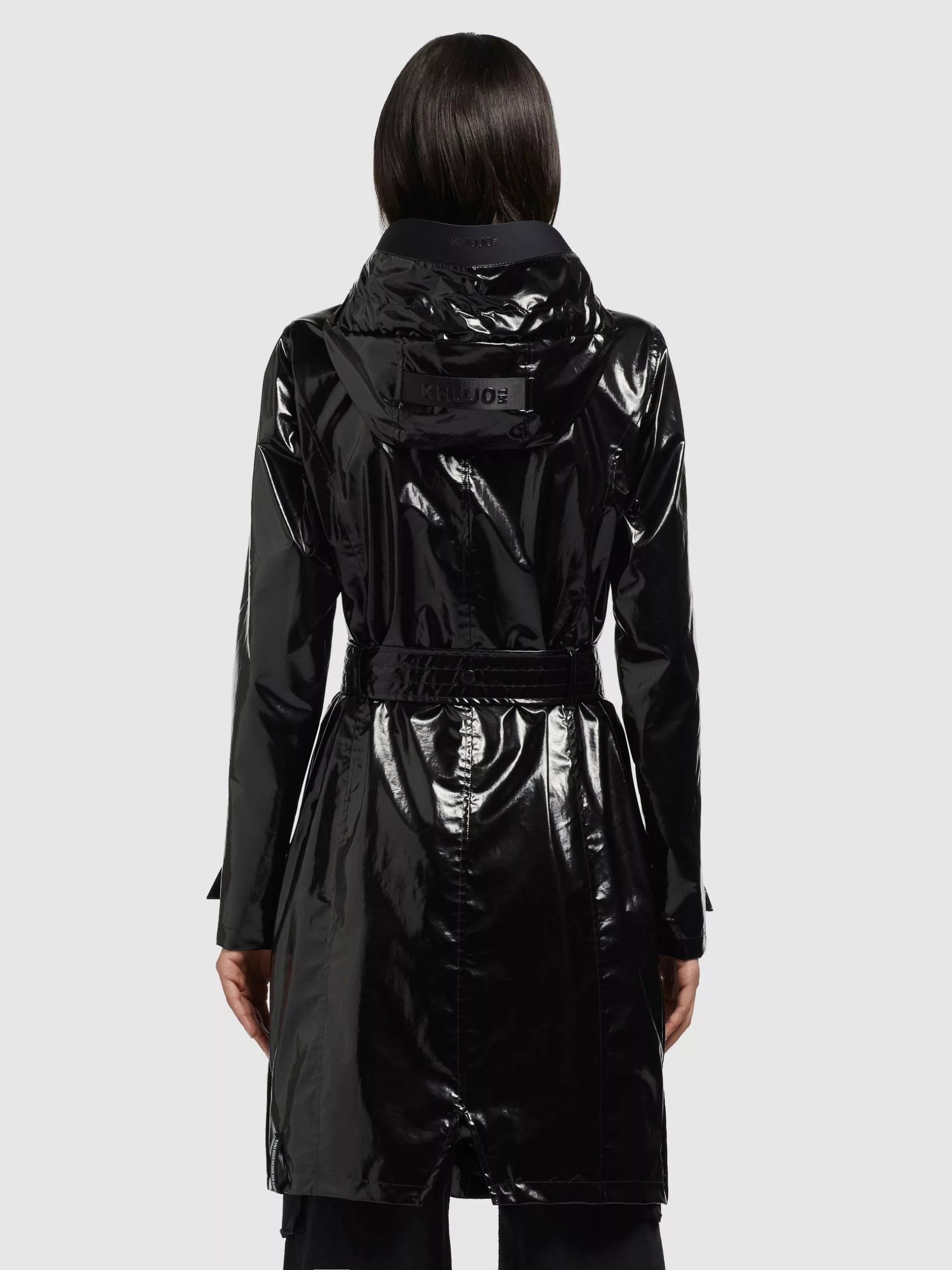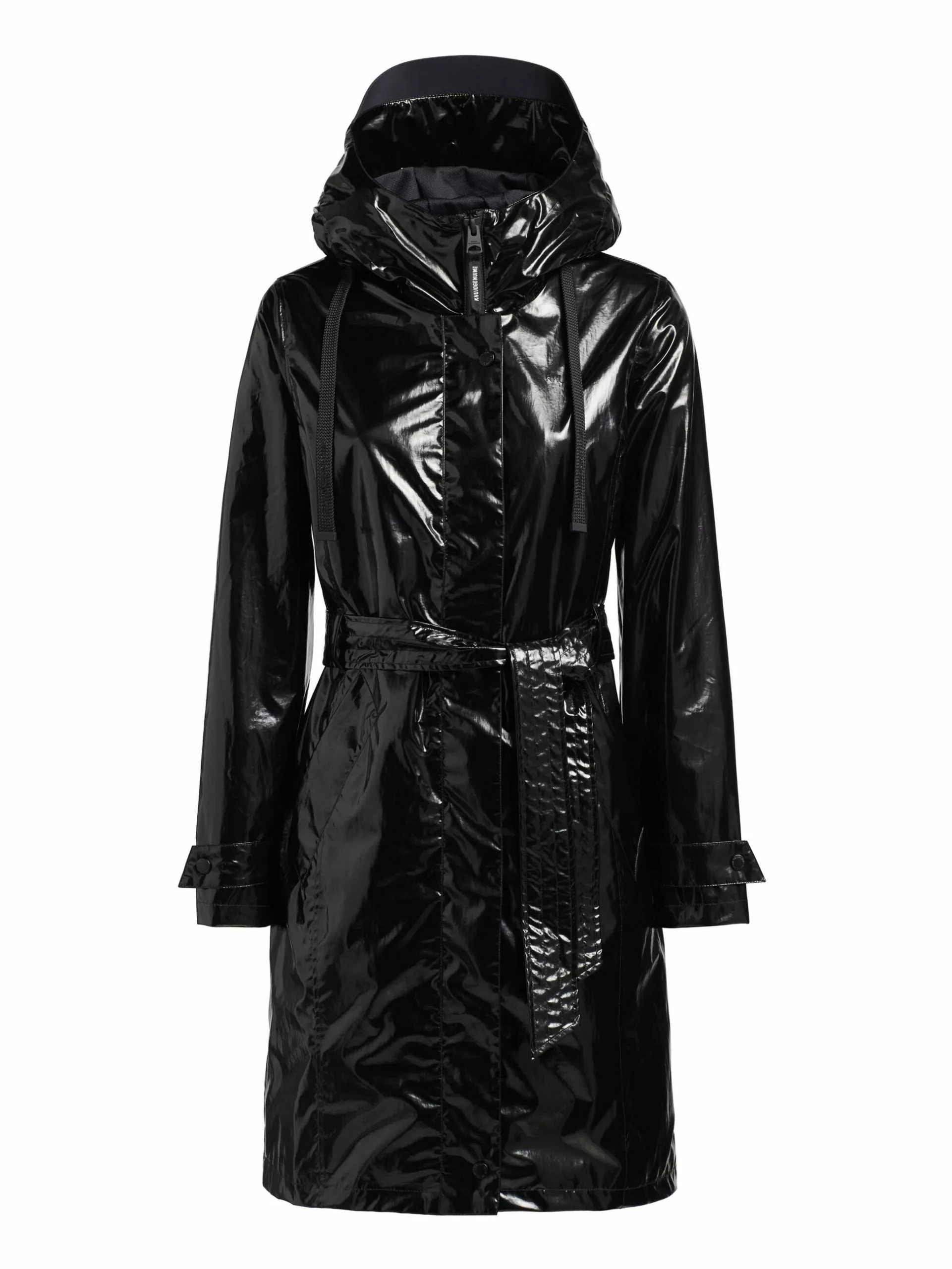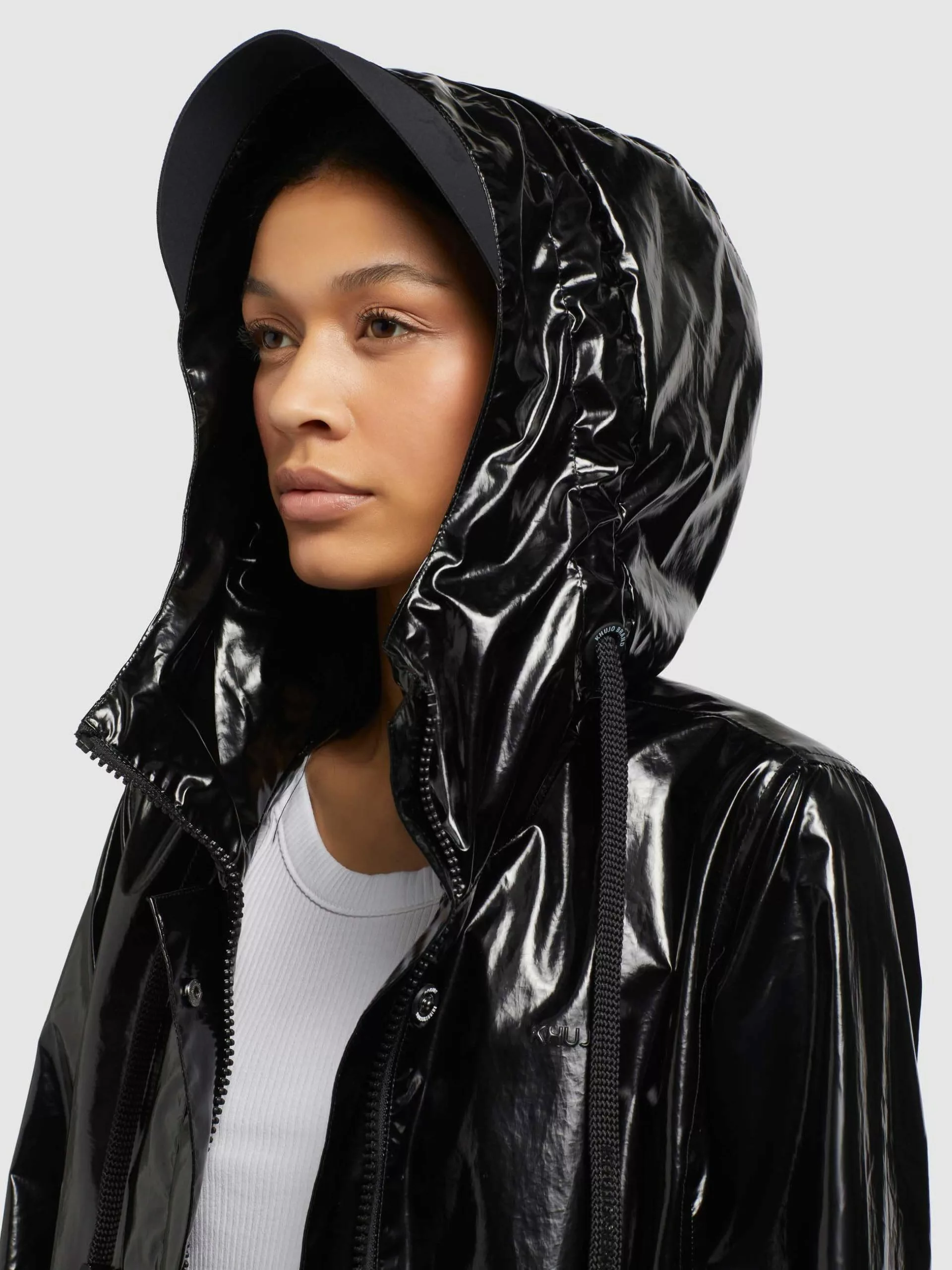 Der glänzende khujo Mantel ALECIA ist eine Mischung aus Trenchcoat und Regenmantel. Dank einem wasserabweisenden Obermaterial, einer Kapuze mit Meshfutter und Kordelzug, Seitenschlitzen mit Druckknöpfen sowie Belüftungsösen unter den Armen und einem Mesheinsatz im Innenfutter bietet der Sommermantel einen angenehmen Tragekomfort. Ein abnehmbarer Stoffgürtel, ein Reißverschluss mit Magnetknopfleiste, Eingrifftaschen und eine Innentasche runden das Desgin bei diesem Kurzmantel gelungen ab.