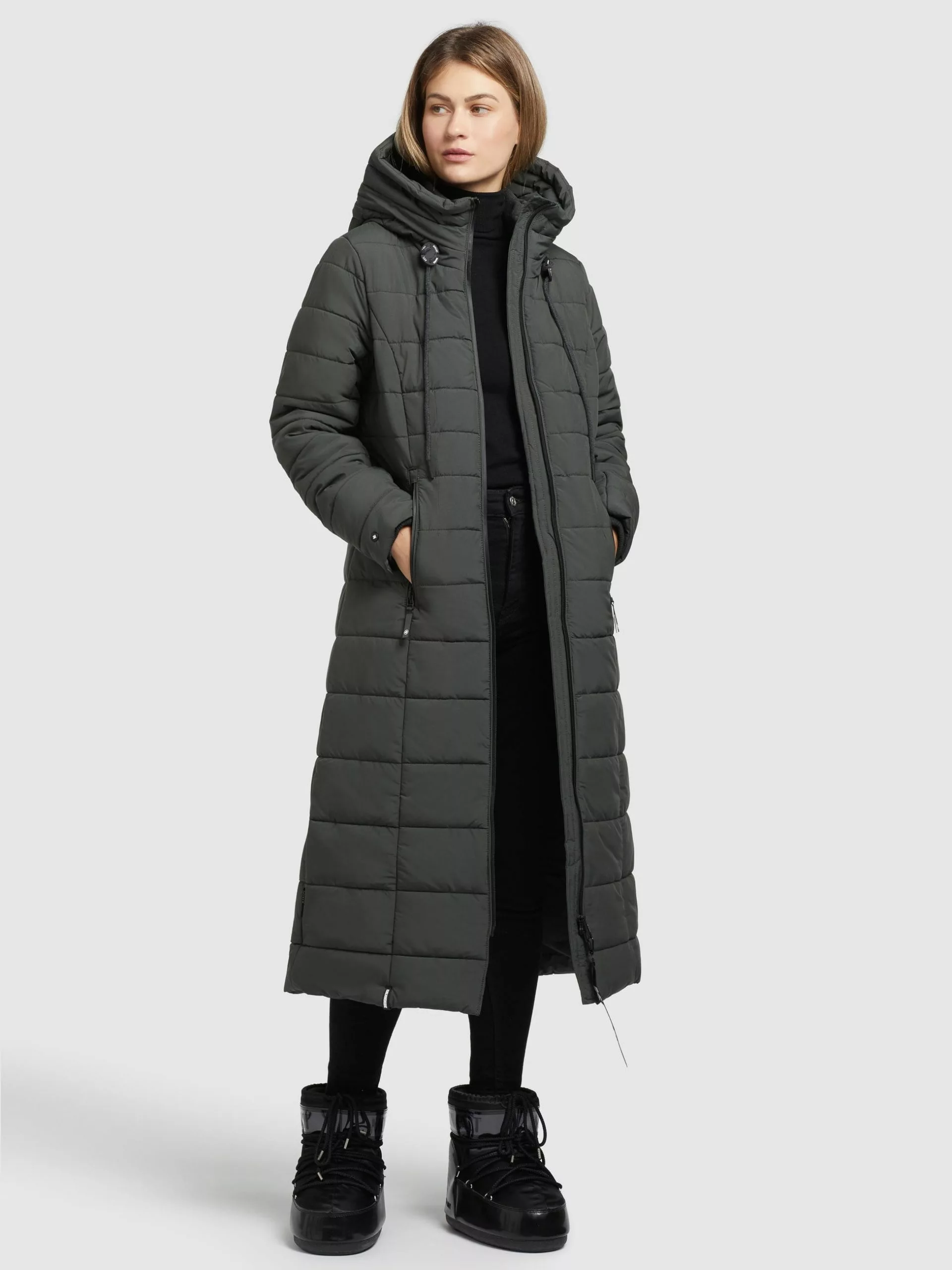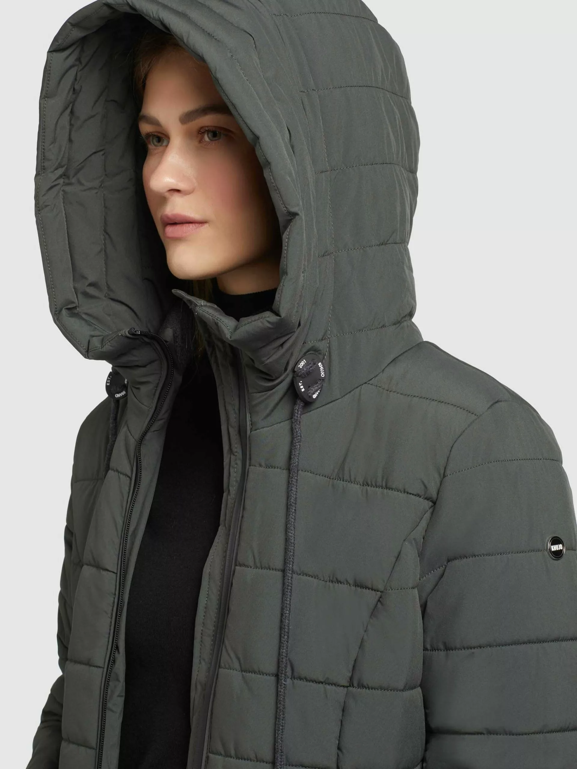 Mit einer leichten Wattierung und einem Gehschlitz mit Reißverschluss für ausreichend Bewegungsfreiheit begeistert der khujo Mantel CASCA LIGHT in dieser Saison. Diese im Slim Fit geschnittene Steppjacke ist mit einem Kordelzug an der hoch schließenden Kapuze, einem integrierten Strickkragen und einem Zwei-Wege-Reißverschluss sowie Reißverschlusstaschen mit einer wasserabweisenden Gummierung ausgestattet. Die Taschenbeutel mit Fleece schützen zudem die Hände bei frostigen Temperaturen.