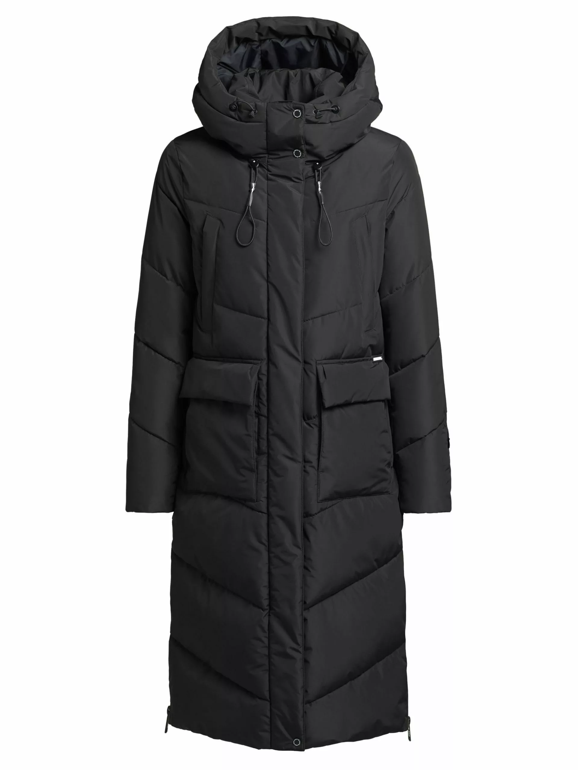 Mit innenliegendem Stehkragen und einer hoch schließenden Kapuze begleitet Dich der warm wattierte khujo Mantel ELVITA durch die kalte Jahreszeit. Die im Loose Fit geschnittene und gesteppte Winterjacke begeistert zudem mit einem Reißverschluss in Kombination mit einer Druckknopfleiste, Eingriff-, Patten- und Reißverschlusstaschen sowie Taschenbeutel mit Fleece und elastische Rippbündchen am Ärmelfutter. Für Deine individuelle Bewegungsfreiheit gibt es seitliche Gehschlitze mit Reißverschlüssen.
