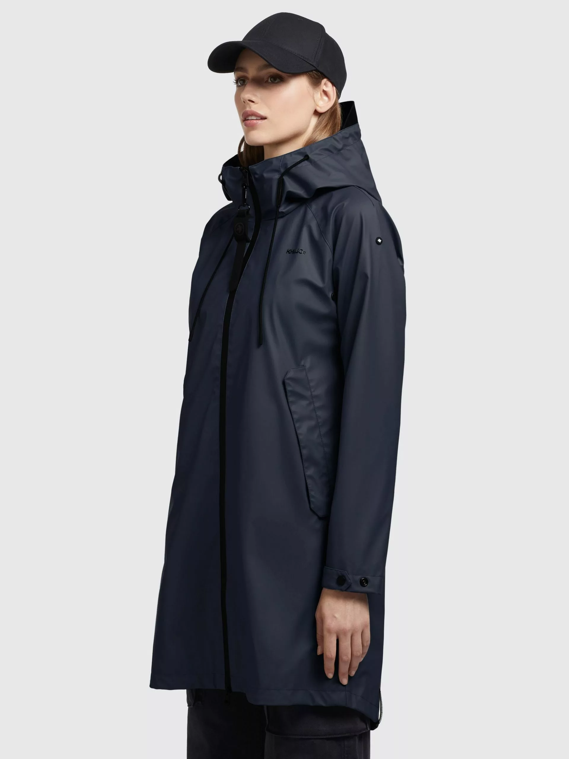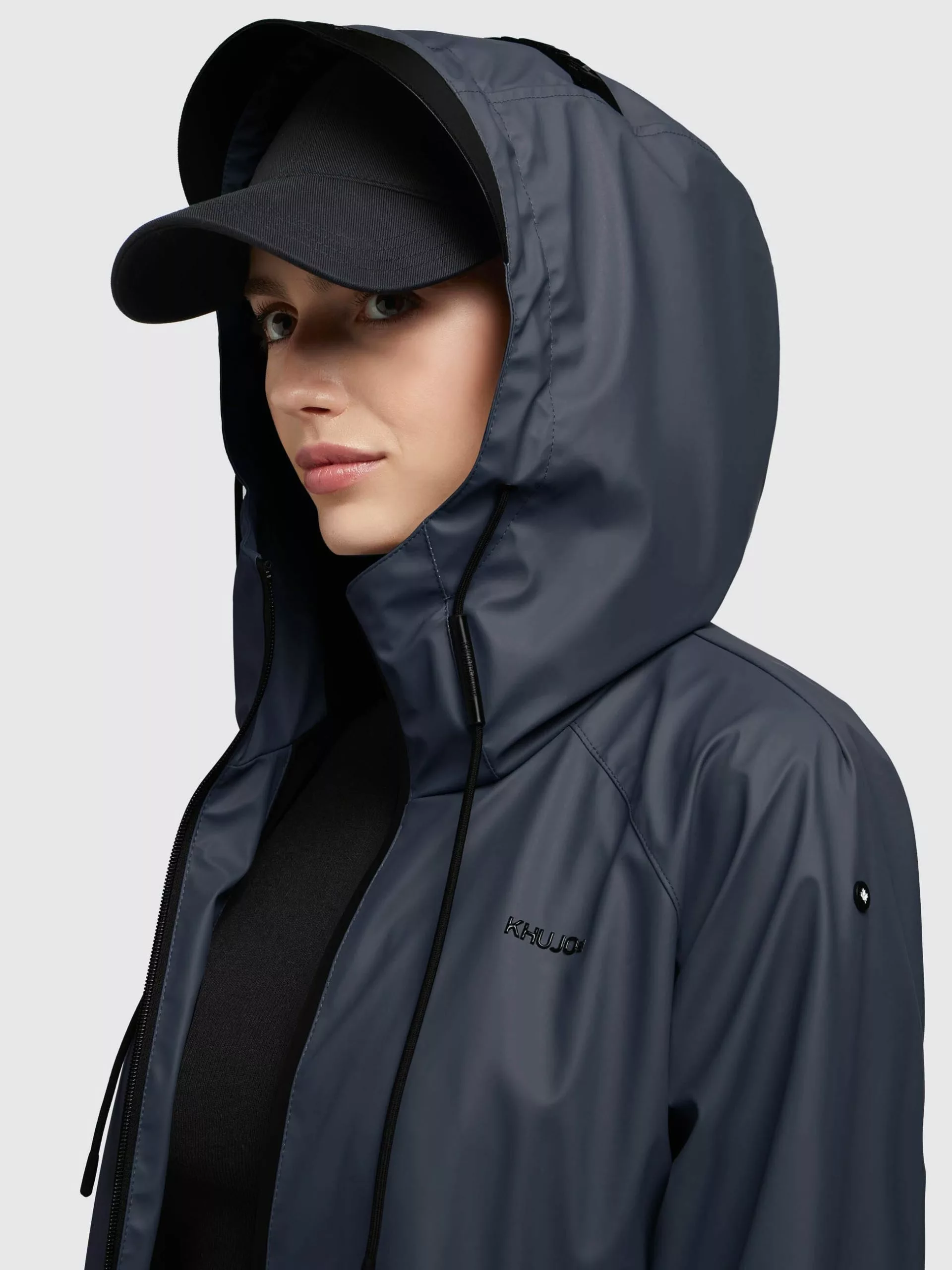 Der lässige khujo Mantel FANKA schützt dank des beschichteten Obermaterials und einer Kapuze mit Kordelzug vor Wind und Regen. Ein wasserabweisender Zwei-Wege-Reißverschluss, ein leichtes Innenfutter, eine Rückenpasse mit Öffnungsschlitz und Belüftungsösen unter den Armen sorgen für eine stylische Mischung aus Kurzmantel und Regenjacke mit besonderem Tragekomfort. In den Eingrifftaschen mit Druckknöpfen und einer Innentasche lassen sich zudem Kleinigkeiten prima verstauen.