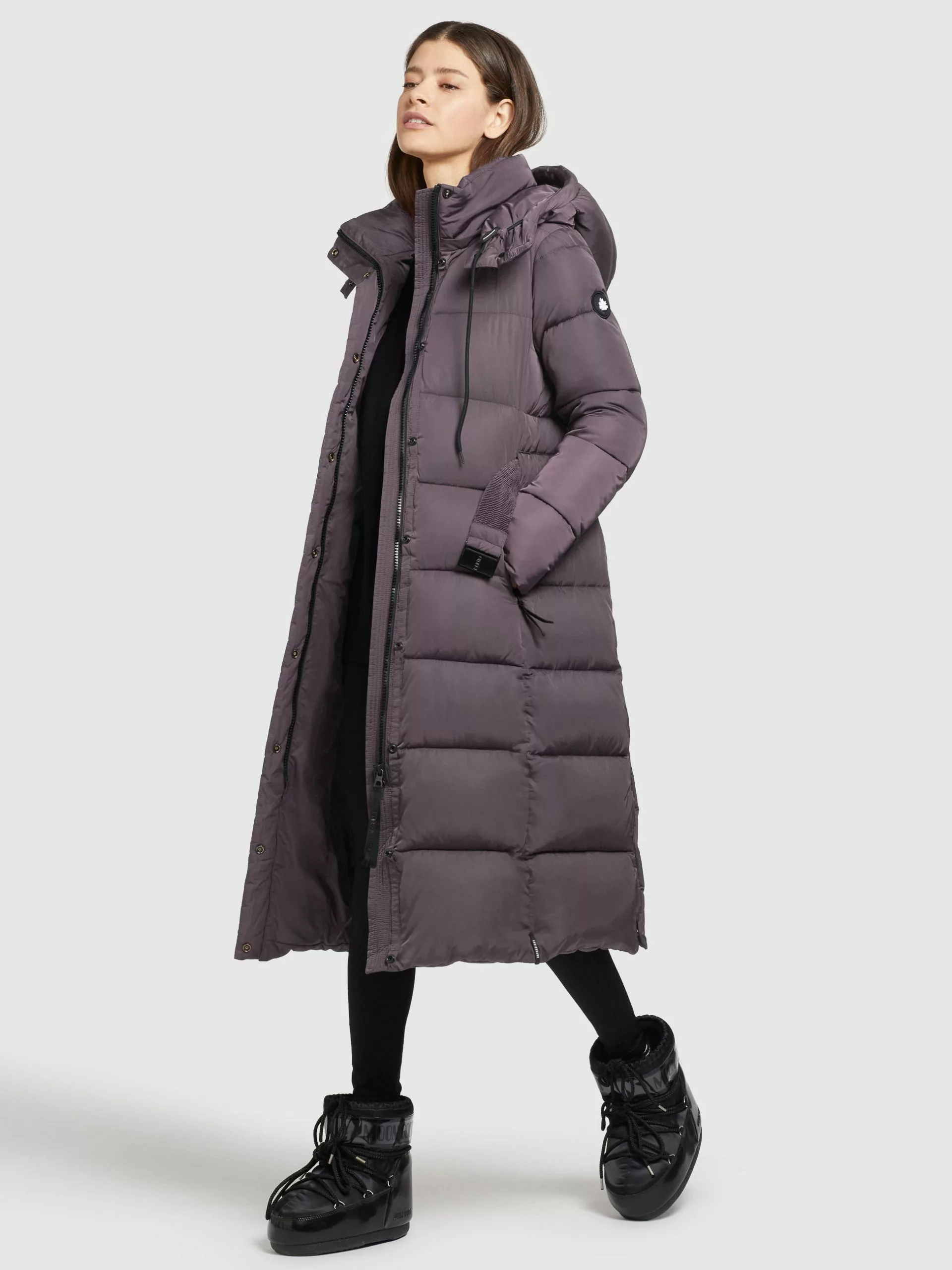 Mit der glänzenden Optik und einem abnehmbaren Stoffgürtel setzt der knielange khujo Mantel HAZELLE in dieser Saison ein modisches Statement bei Deinen Winter Outfits. Die warme Wattierung, die abnehmbare Kapuze mit elastischem Kordelzug, ein wattierter Stehkragen, Taschenbeutel mit Fleece und elastische Bündchen am Ärmelfutter schützen bei diesem Steppmantel zudem vor Wind und Wetter. Rückseitige Schlitze mit Druckknöpfen sowie ein Zwei-Wege-Reißverschluss sorgen zudem für Bewegungsfreiheit.
