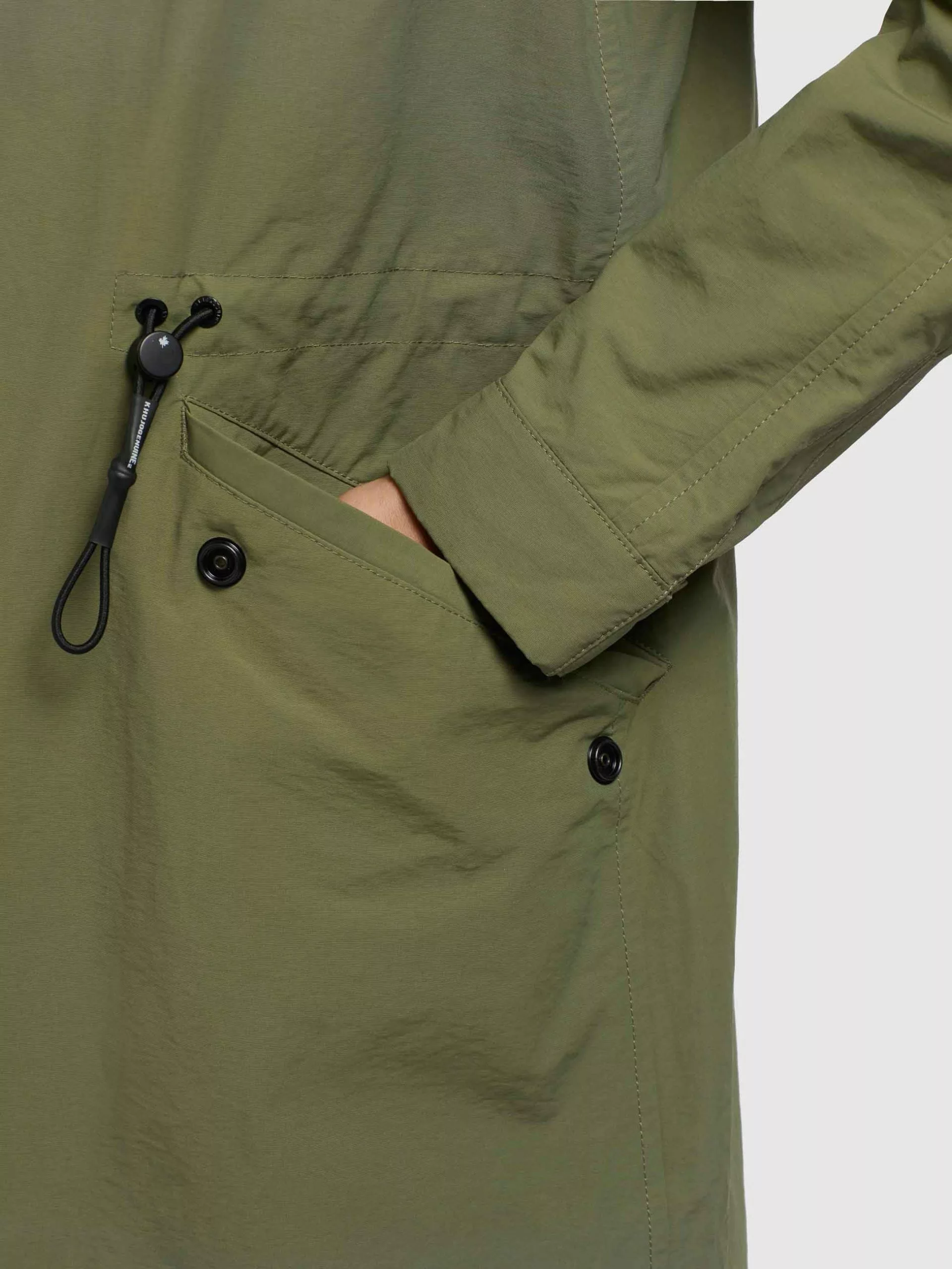 Der leichte khujo Mantel MARNIA2 ist ein sommerlicher Kurzmantel mit einem knielangen Schnitt und zahlreichen Features, wie einem Zwei-Wege-Reißverschluss mit einer wasserabweisenden Beschichtung, Belüftungsösen unter den Armen, einer hoch schließenden Kapuze, verstellbaren Ärmelriegeln, einem Gehschlitz sowie elastischen Kordelzügen an der Kapuze, der Taille und dem Saum. Kleinigkeiten lassen sich bei diesem Parka in den Pattentaschen mit Druckknöpfen sicher verstauen.