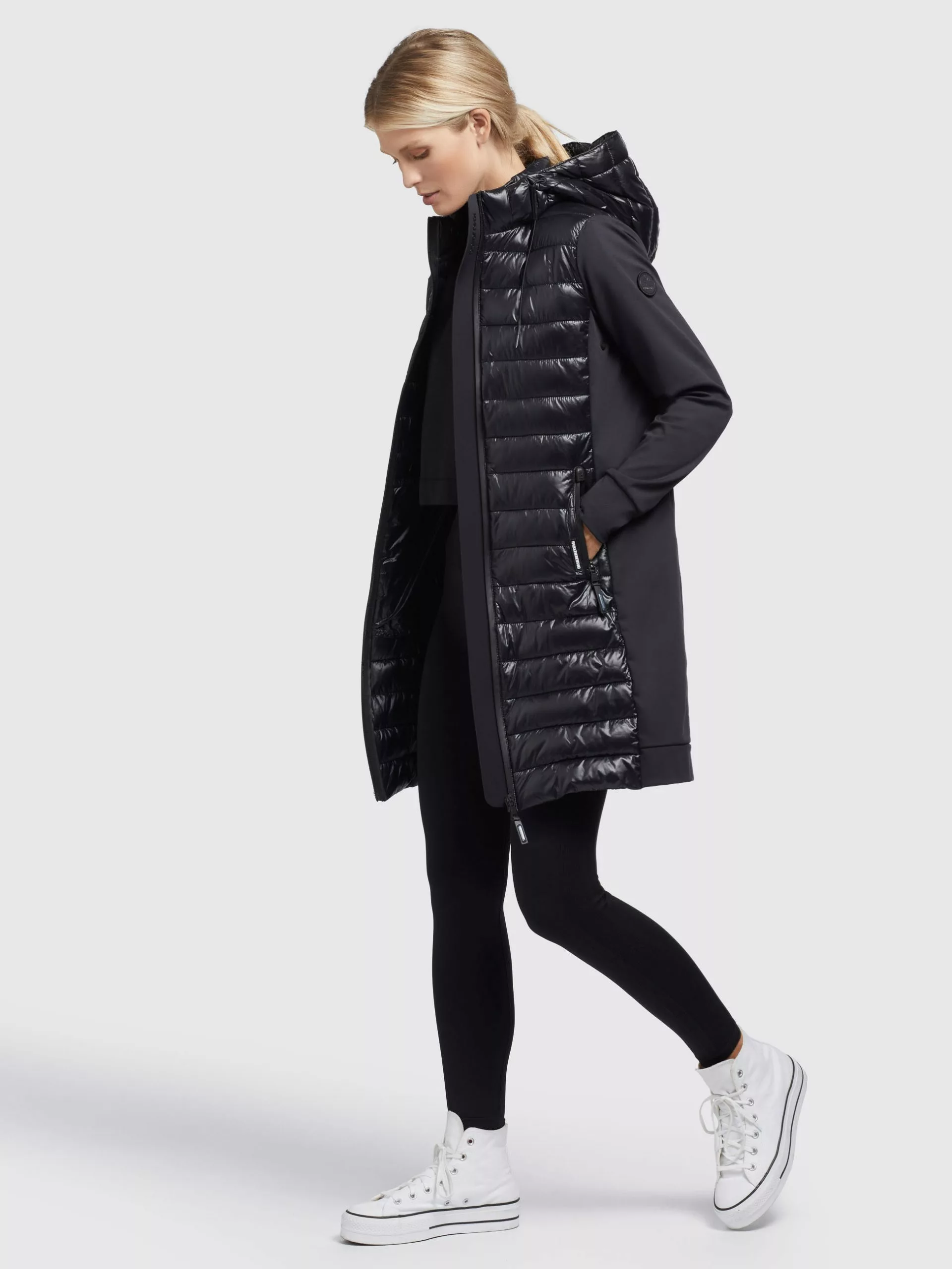 Der leicht glänzende, kurze khujo Mantel RUTH SHINY mit abnehmbarer Kapuze und einem elastischen Kordelzug sowie einer leichten Wattierung in der gesteppten Vorderseite, Kapuze und der Rückenpasse lässt sich vielseitig kombinieren. Dank einem Reißverschluss und seitlichen Reißverschlusstaschen mit einer wasserabweisenden Beschichtung, einer Windschutzblende und einem verstärkten Stehkragen bist Du mit diesem gesteppten Kurzmantel gut ausgestattet.