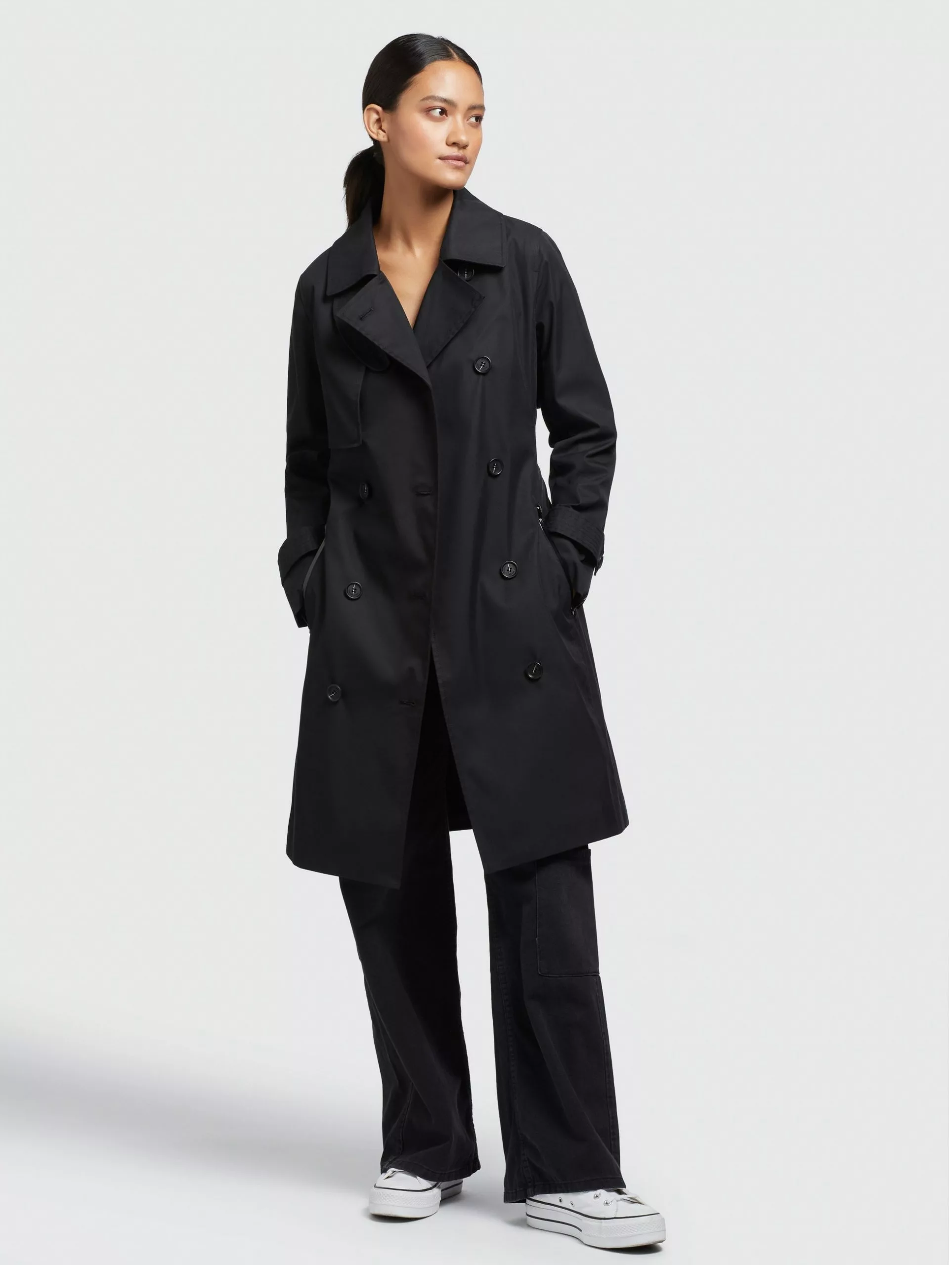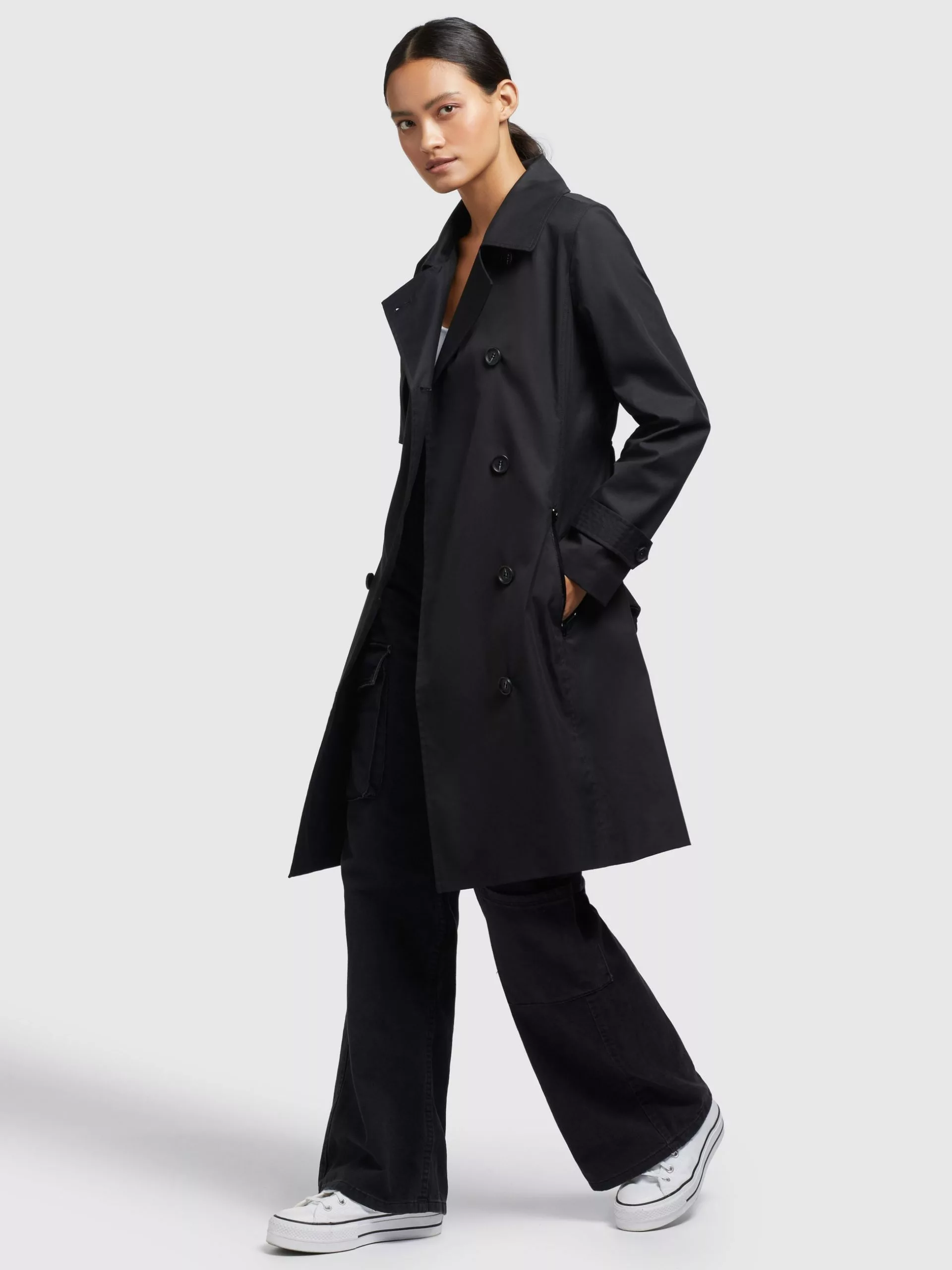 Eine abnehmbare Windschutzblende am Reverskragen und eine überlappend schließende Vorderseite mit Knopfleiste geben dem khujo Mantel SARINA einen uerwechselbaren Look. Eine Logo-Bordüre am Öffnungsschlitz der Rückenpasse, wasserabweisende Reißverschlüsse an den Eingrifftaschen und ein abnehmbarer Gürtel setzen bei diesem klassischen Trenchcoat modische Akzente. Ein leichtes Innenfutter und ein Gehschlitz komplettieren den Kurzmantel.