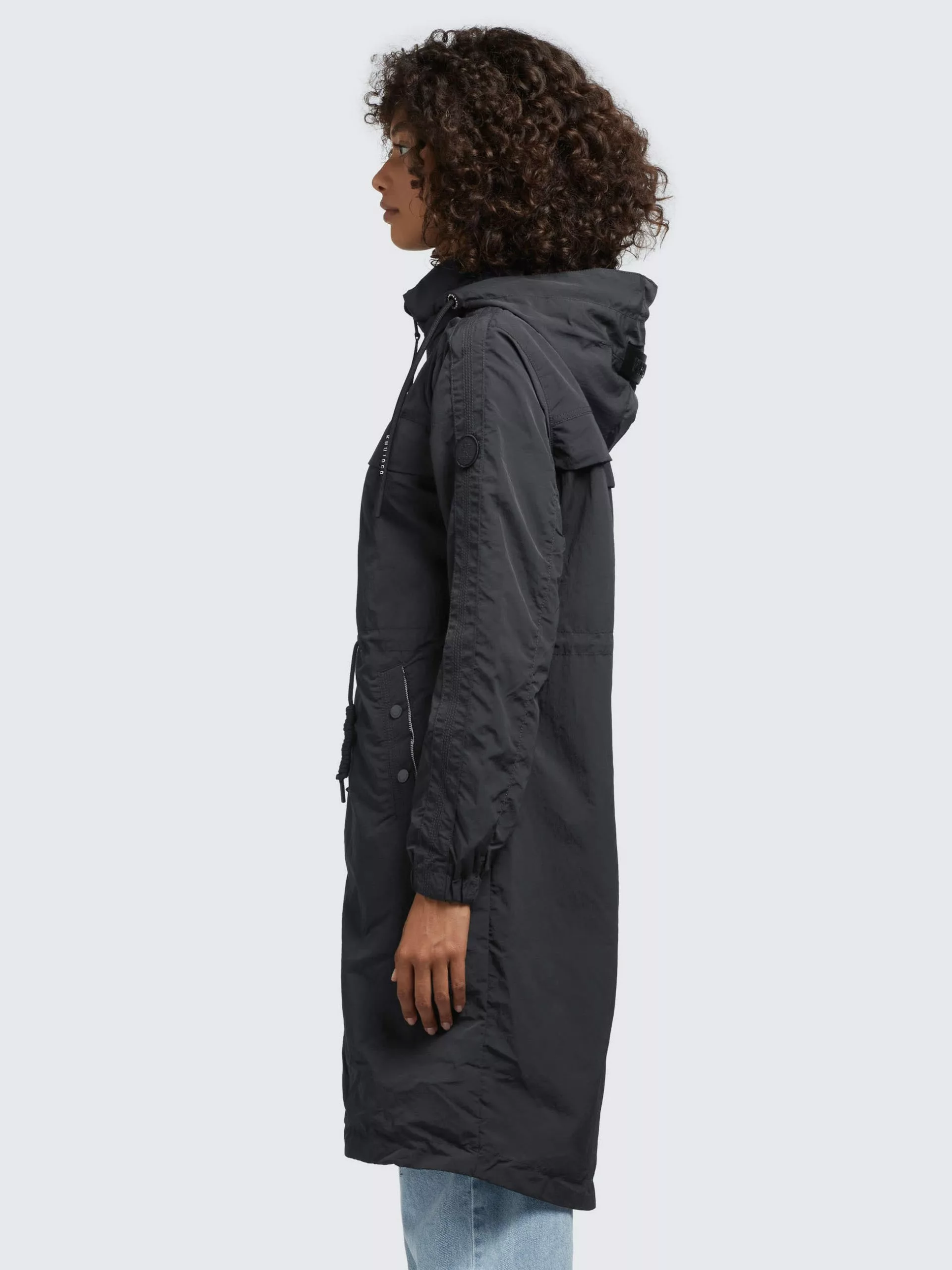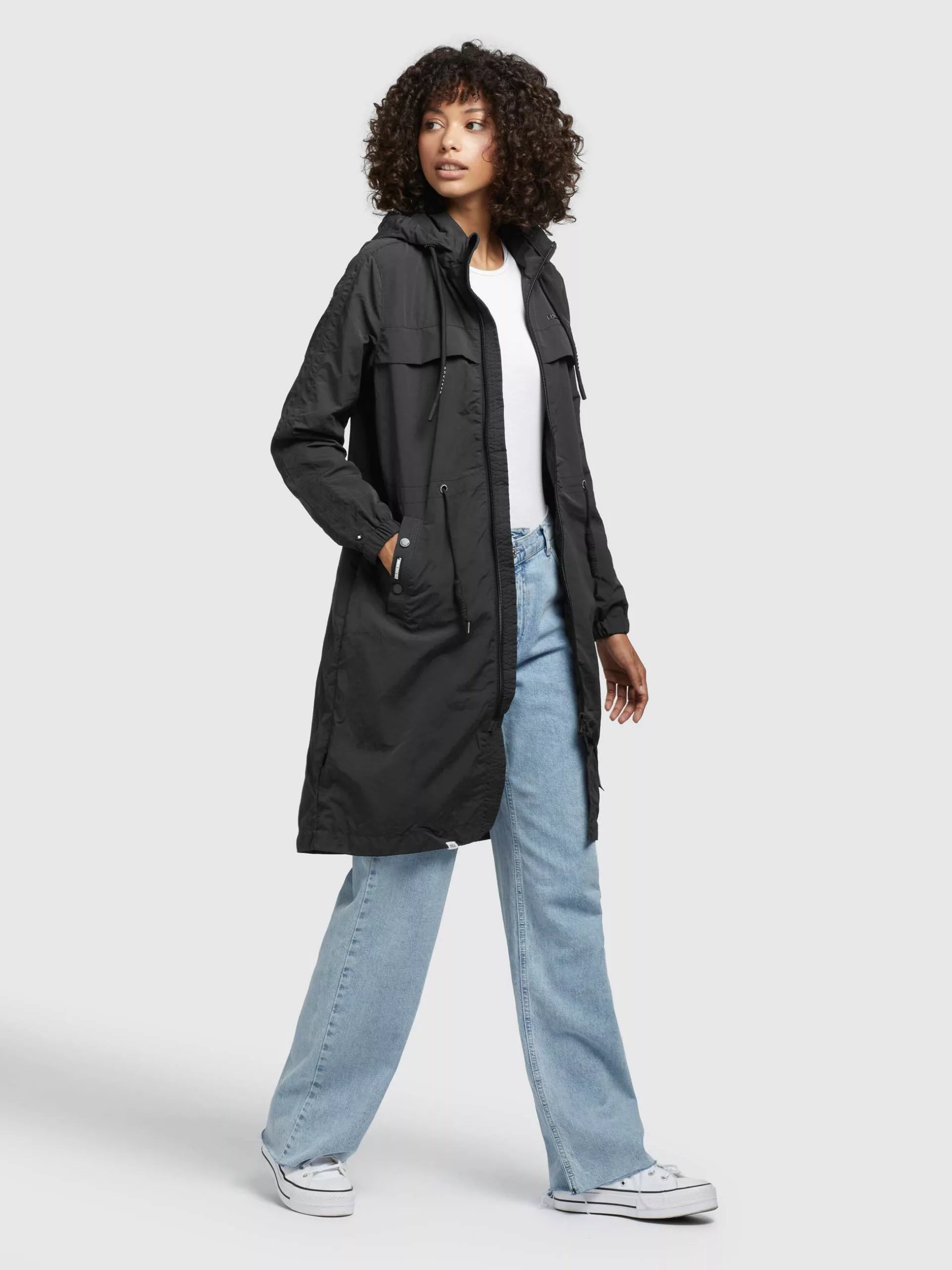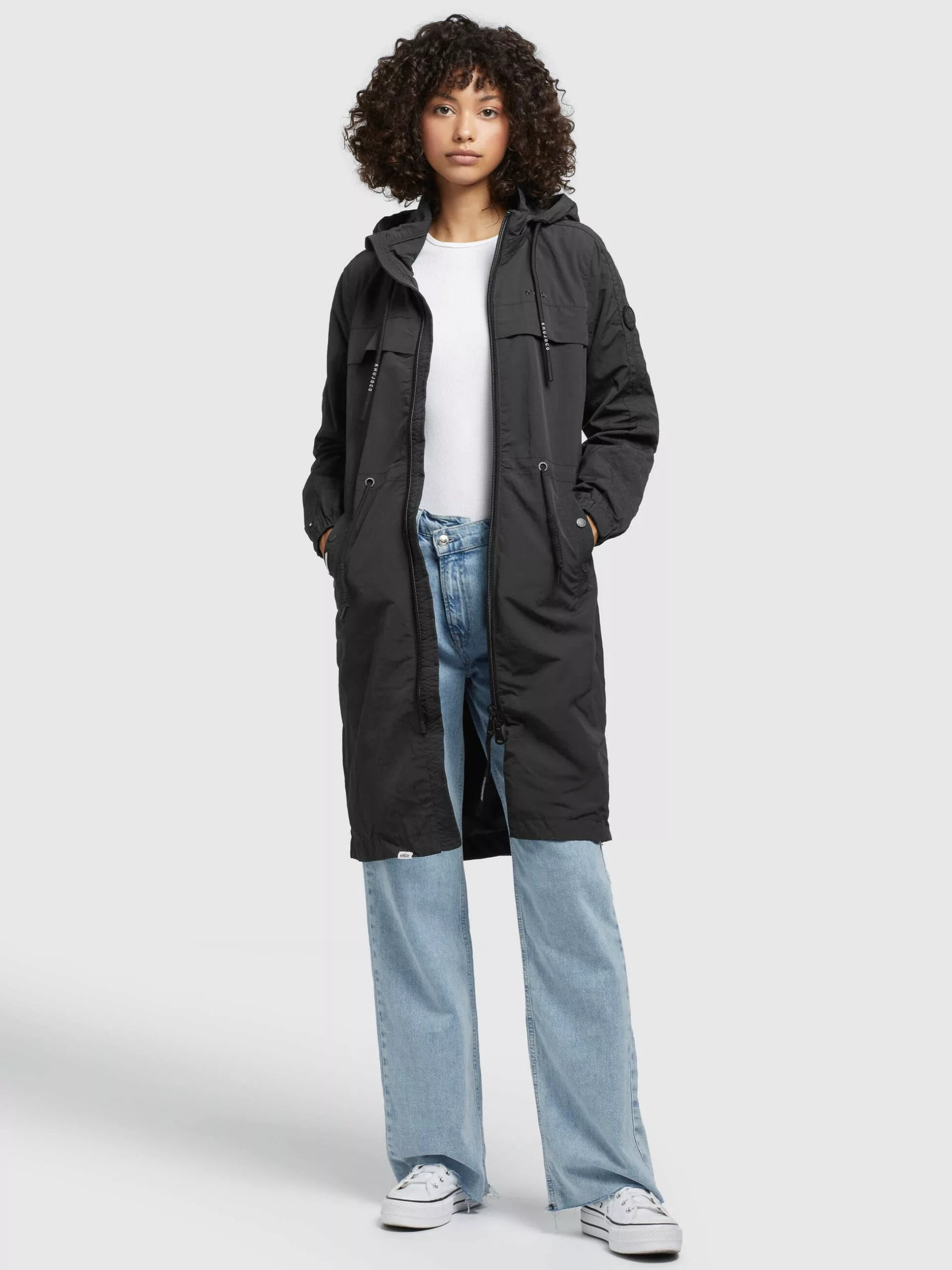 Der lange Schnitt und das leichte Material mit Crinkle-Effekt geben dem khujo Mantel VOYA3 einen uerwechselbaren Look. Ein Zwei-Wege-Reißverschluss und ein Gehschlitz sorgen bei diesem Sommerparka für optimale Bewegungsfreiheit. Das Innenfutter mit einem Einsatz aus Mesh am Oberkörper, eine Innentasche, Kordelzüge an der abnehmbaren Kapuze und der Taille, elastische Abschlüsse an den Ärmelenden sowie Eingrifftaschen mit Druckknopfverschluss runden das Desgin ab.