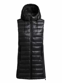 Die glänzende khujo Weste BECCA SHINY mit abnehmbarer Kapuze und einem elastischen Kordelzug sowie einer leichten Wattierung in der gesteppten Vorderseite, Kapuze und dem Rückenteil lässt sich vielseitig kombinieren. Dank einem Reißverschluss und seitlichen Reißverschlusstaschen mit einer wasserabweisenden Beschichtung, einer Windschutzblende und einem verstärkten Stehkragen bist Du mit dieser Steppweste gut ausgestattet.